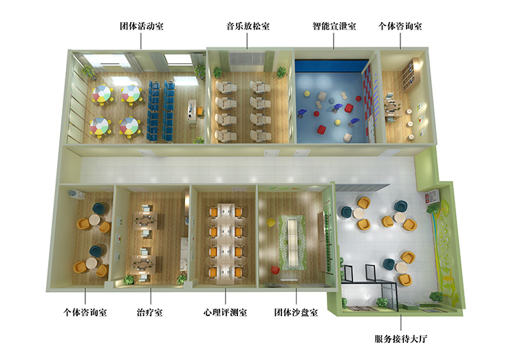 5、团体活动区所需设备:电脑,团体活动道具箱,心理挂图。