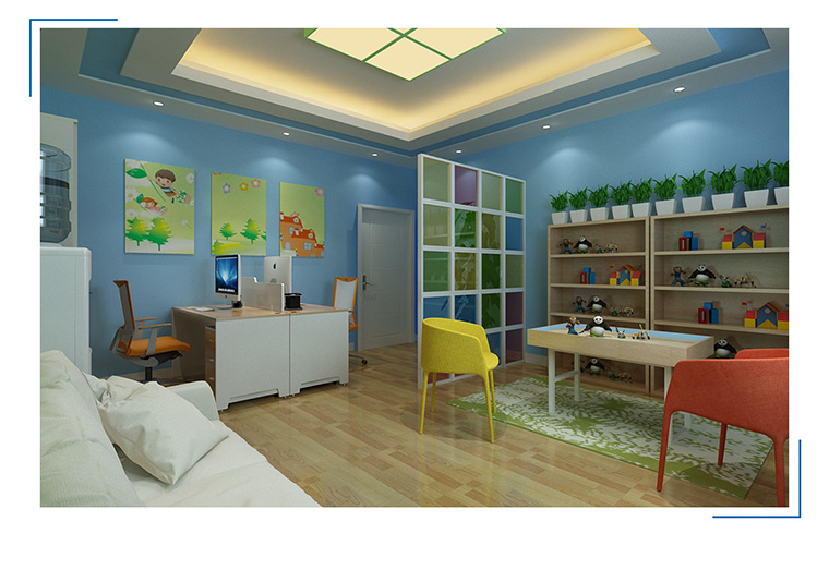 3、个体咨询区所需设备:沙发、茶几,心理挂图。